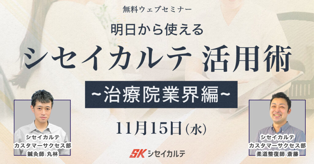 | テーマ : | 明日から使えるシセイカルテ活用術!~治療院業界編~ |